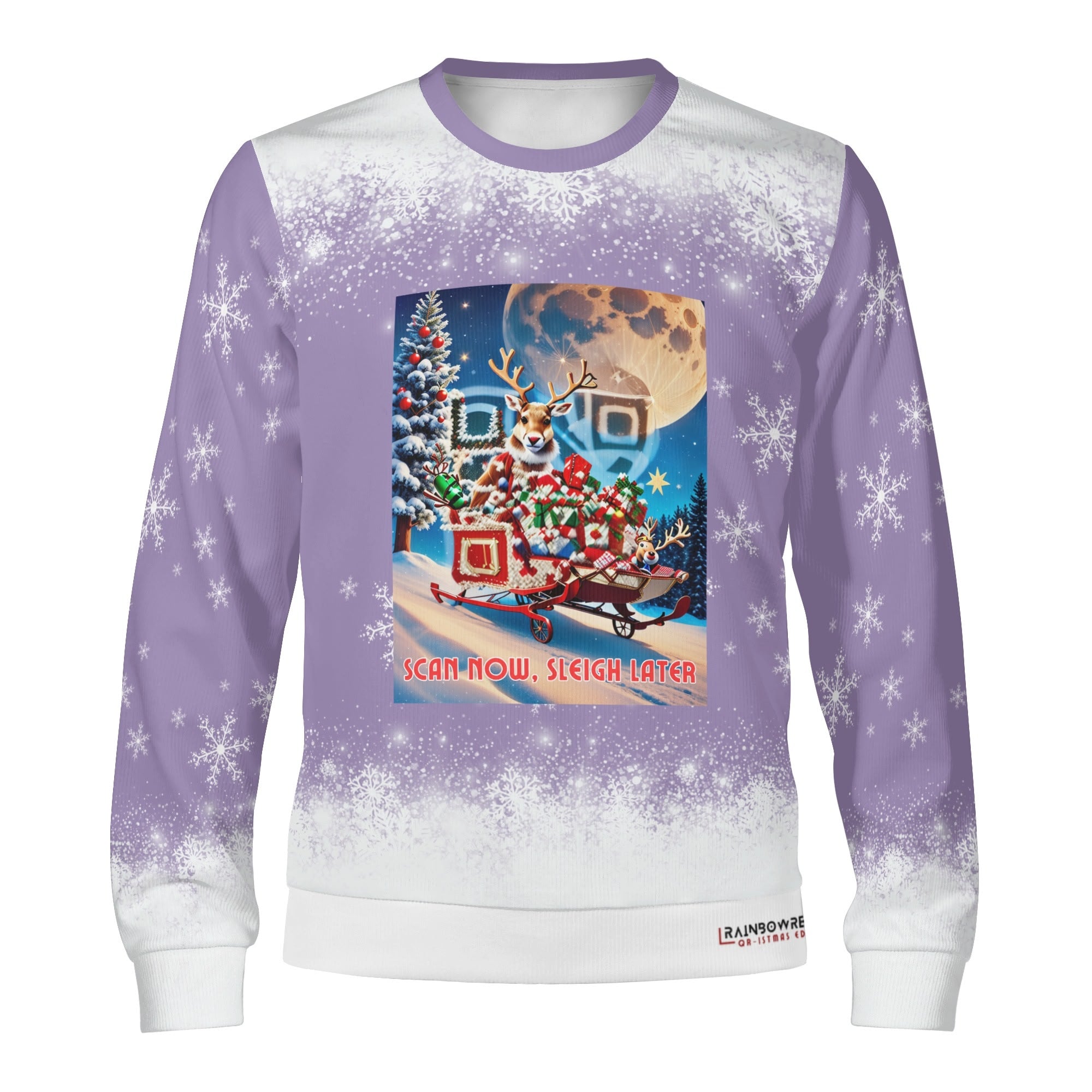 This sweater with a stunning artistic QR design links to Christmas themes, hilarious games, festive playlists, and more. The links update every Christmas, giving your sweater a fresh twist each year!