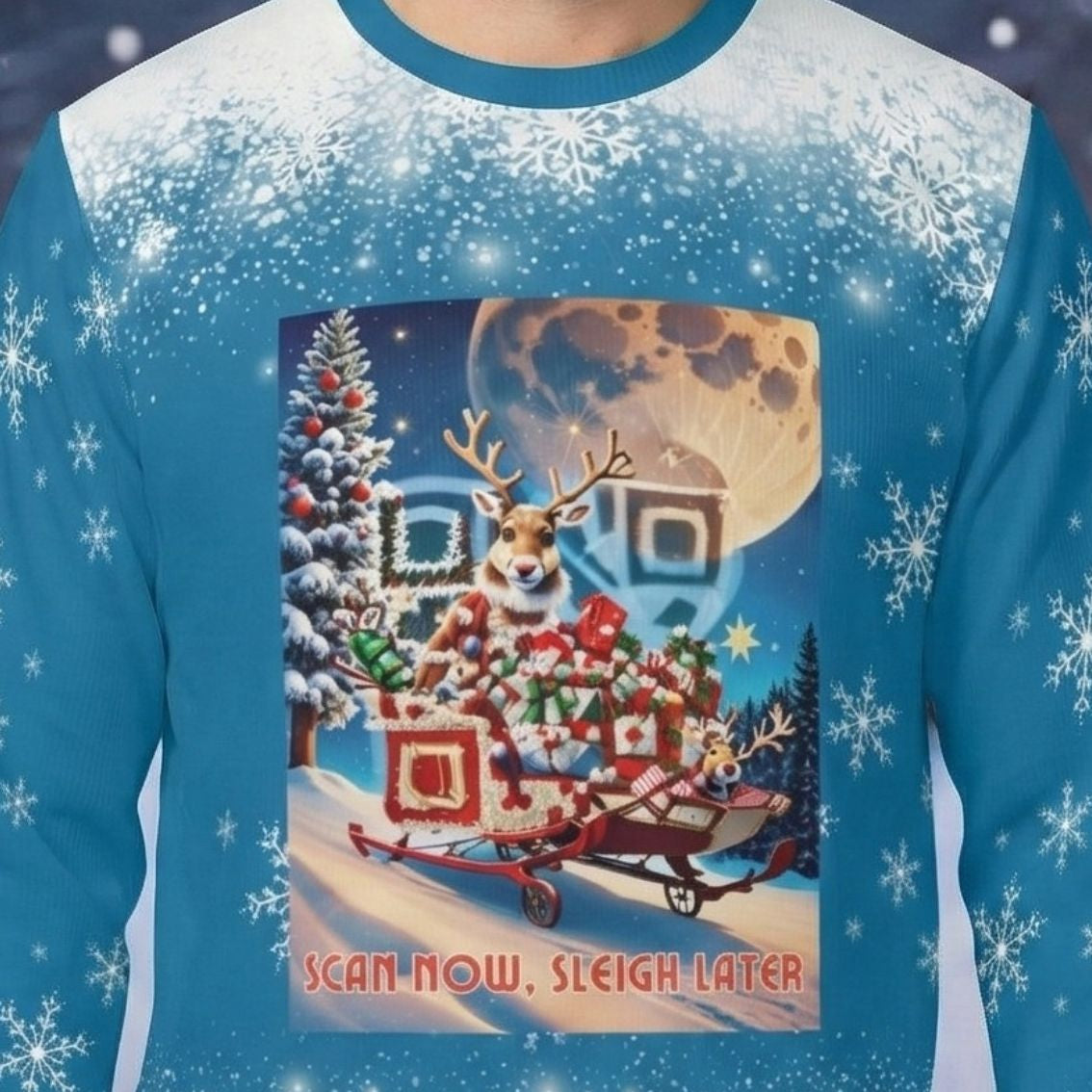 Say goodbye to boring Christmas outfits and discover our scannable Christmas sweaters! Each scan of this "Ugly Christmas sweater" (it's a scannable QR code!) leads to a new surprise: hilarious Christmas games, festive Spotify playlists, Augmented Reality (AR) experiences and other surprises!