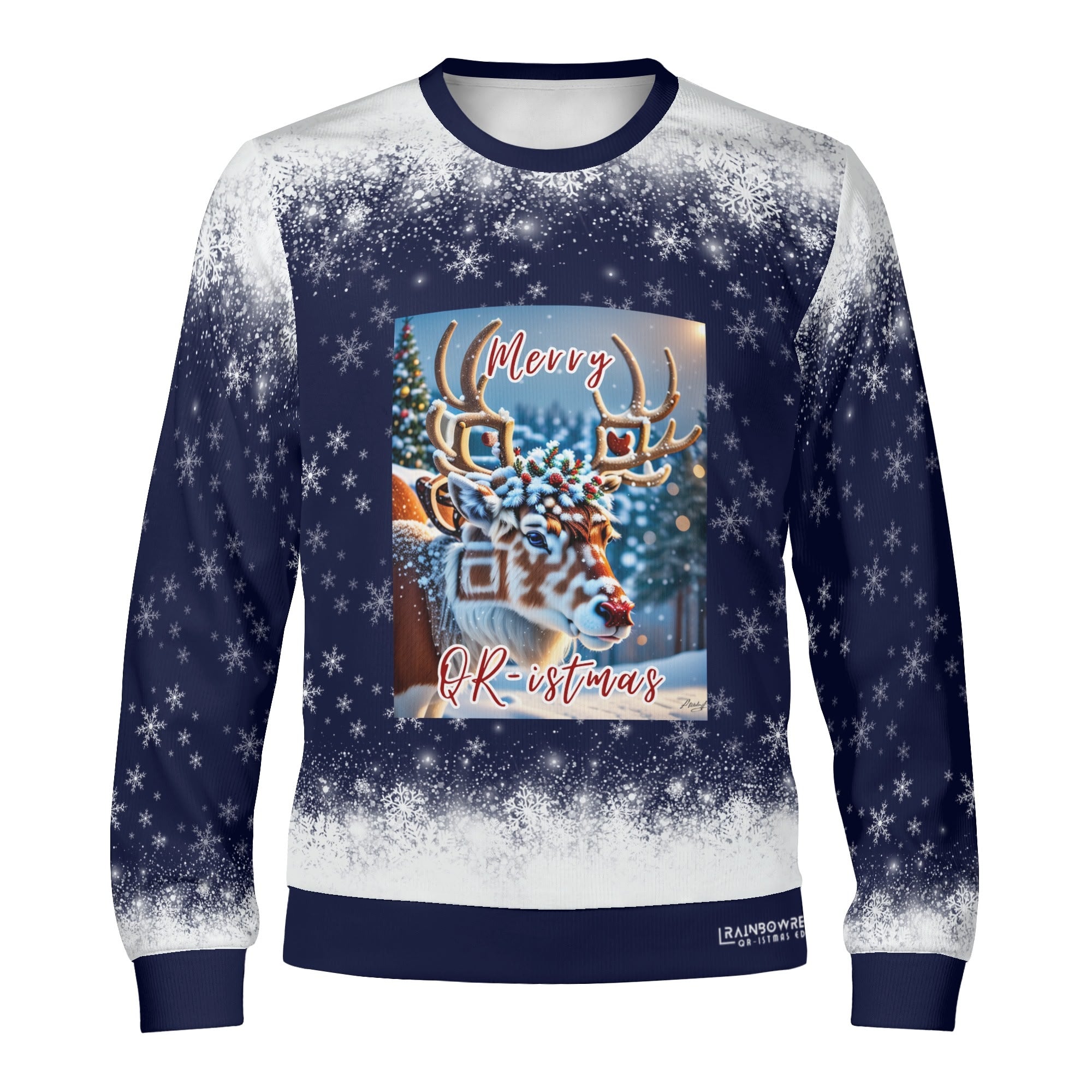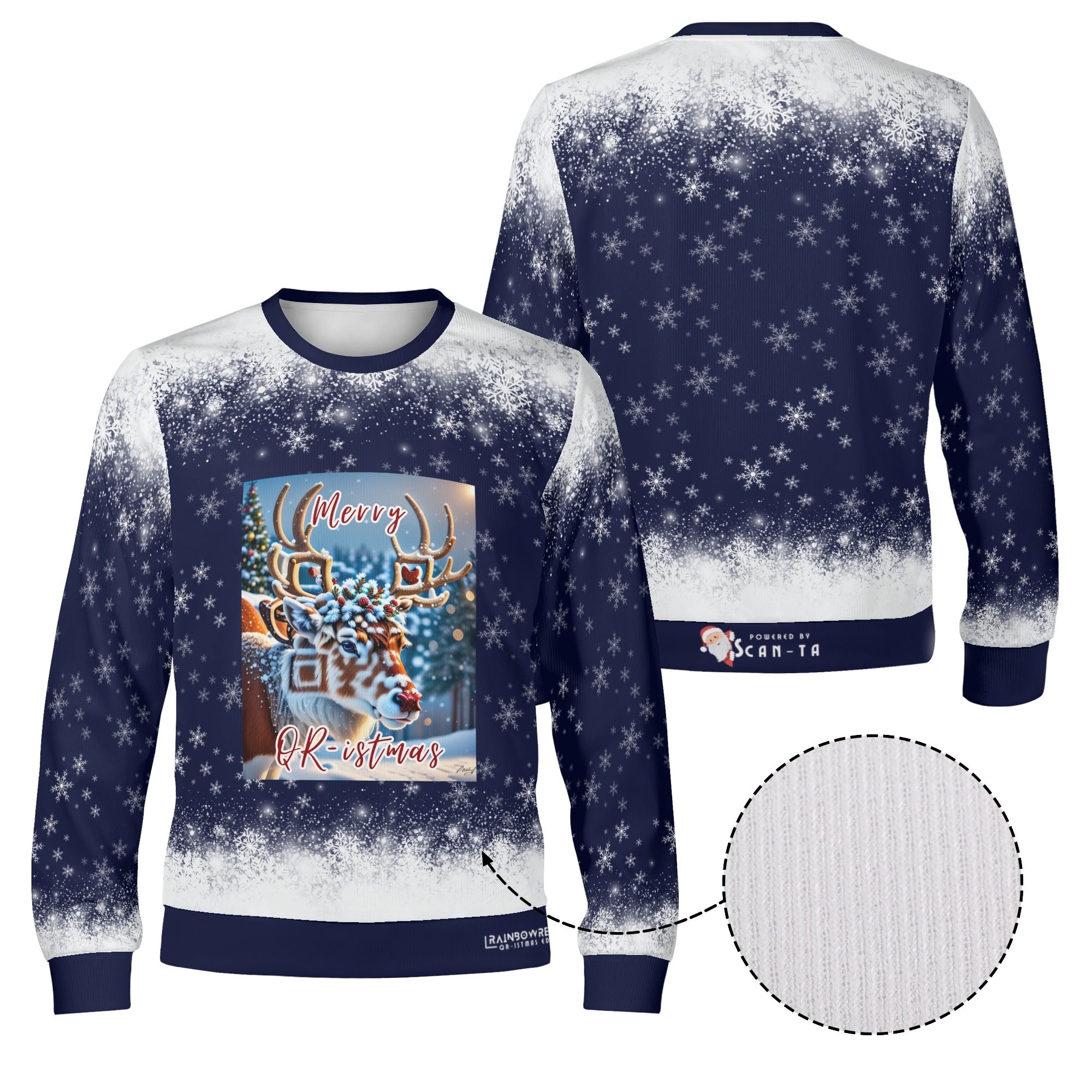 The Reindeer with a QR-titude!, links to an Augmented Reality view: can you spot Santa in the Sky? - (Unisex) Ugly Christmas Sweater with a Twist